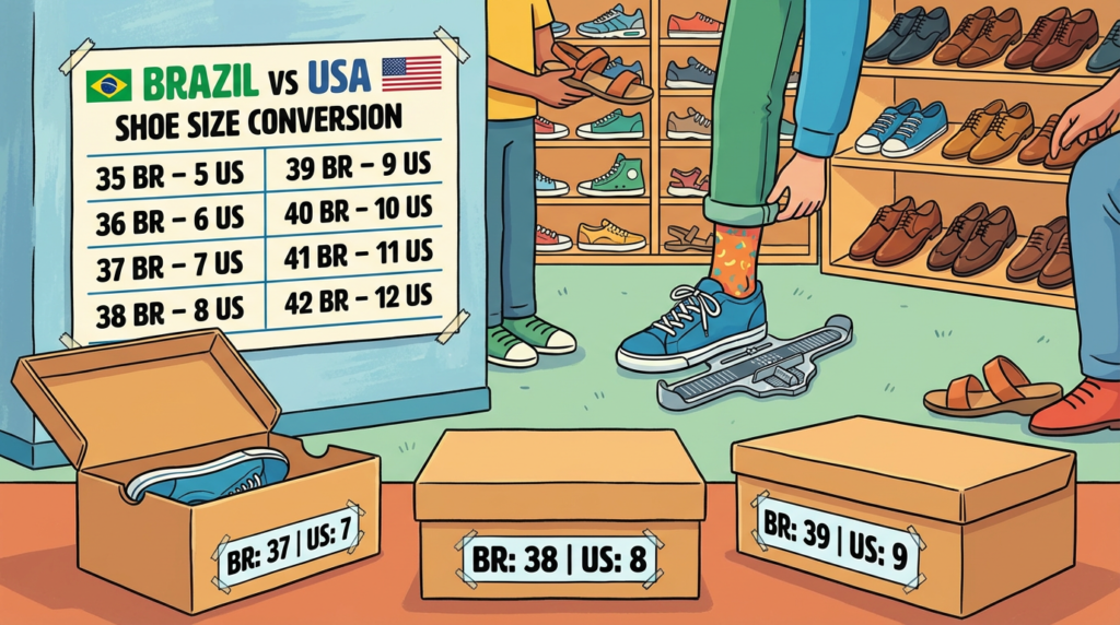 Tamanho calçados Brasil EUA: tabela completa e como não errar na compra