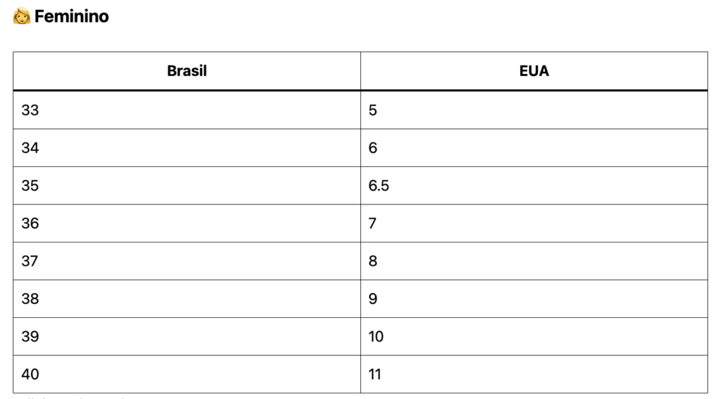 Tamanho calçados Brasil EUA: tabela completa e como não errar na compra